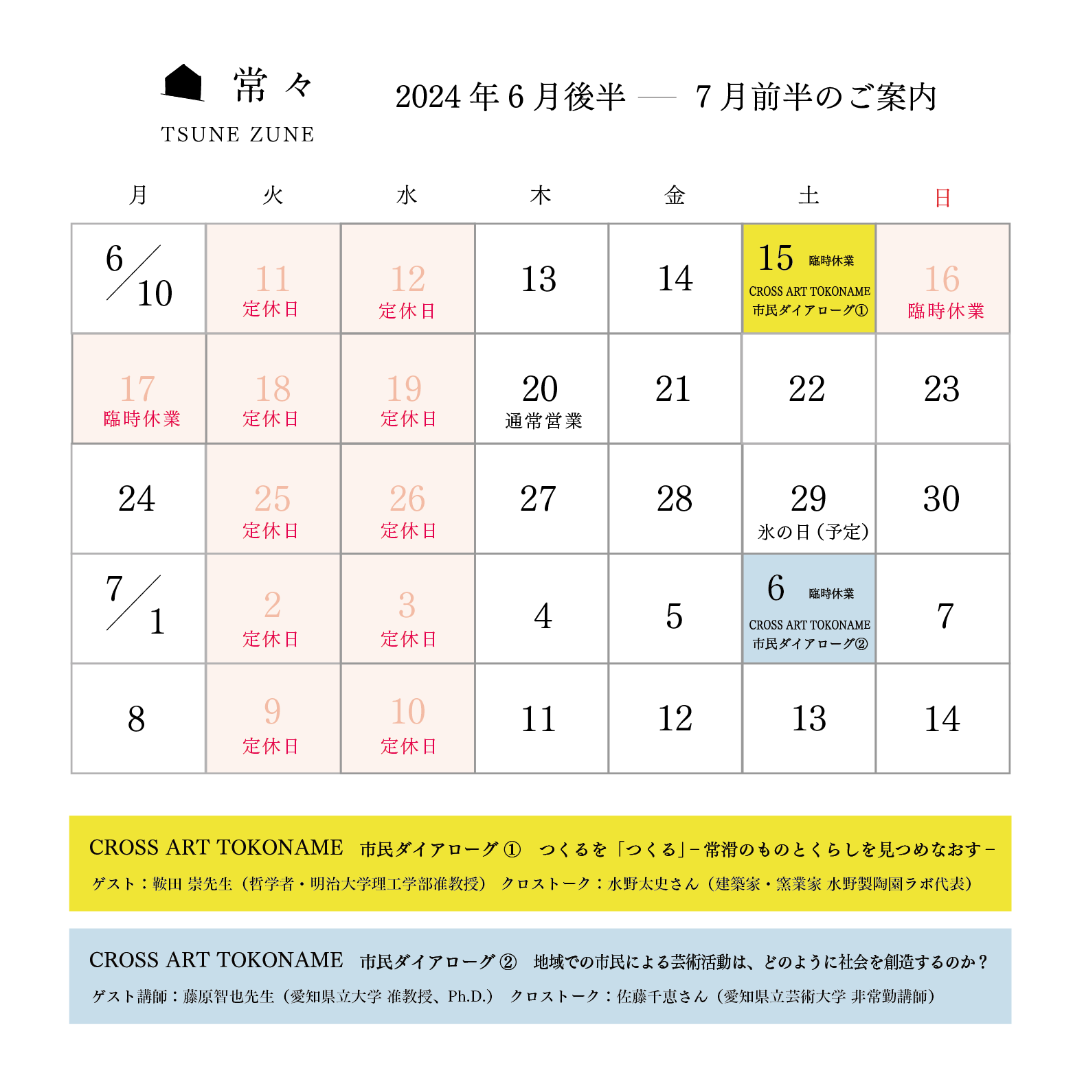 6月後半ー7月前半の予定 2024 6/14 未分類 2024 NEWS TOPIC 添うモノ - Bonsai around - 2024年7月−8月前半のご案内 関連記事 2026年1月のご案内 2026年1月6日 2025年もありがとうございました。 2025年12月31日 海を感じる時 外山辰郎 2025年12月24日 TOKONAME HUB TALK vol.18開催のご案内 2025年10月21日 いとう写真館2025ご予約開始のご案内 2025年10月21日 10月後半〜11月前半のスケジュール 2025年10月21日 「雲と泥と」形而上の庭 “Cloud and Mud and”metaphysical garden 2025年10月8日 10月のカレンダー 2025年10月8日