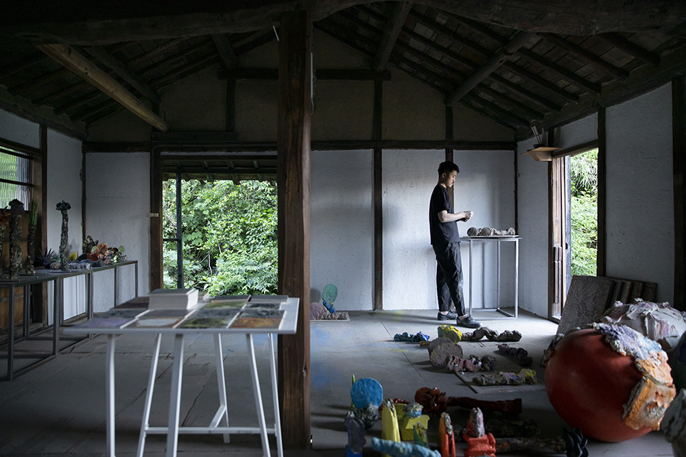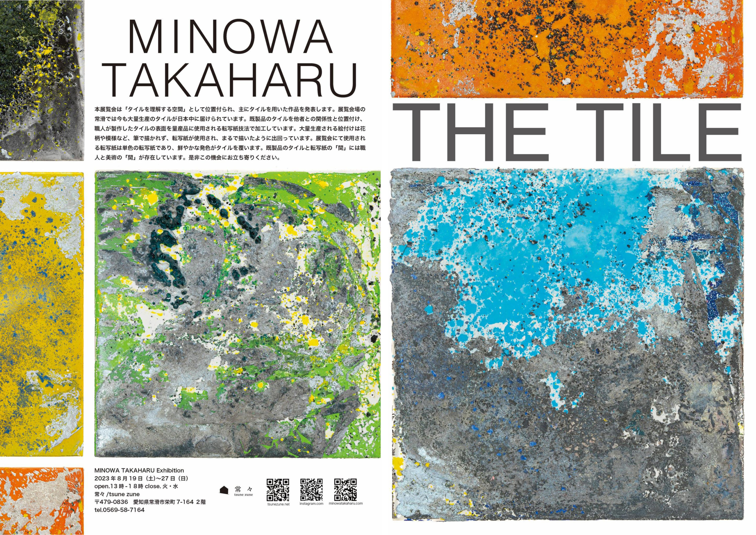 本展覧会は「タイルを理解する空間」として位置付られ、主にタイルを用いた作品を発表します。展覧会場の常滑では今も大量生産のタイルが日本中に届けられています。既製品のタイルを他者との関係性と位置付け、職人が製作したタイルの表面を量産品に使用される転写紙技法で加工しています。大量生産される絵付けは花柄や模様など、筆で描かれず、転写紙が使用され、まるで描いたように出回っています。展覧会にて使用される転写紙は単色の転写紙であり、鮮やかな発色がタイルを覆います。既製品のタイルと転写紙の「間」には職人と美術の「間」が存在しています。是非この機会にお立ち寄りください。