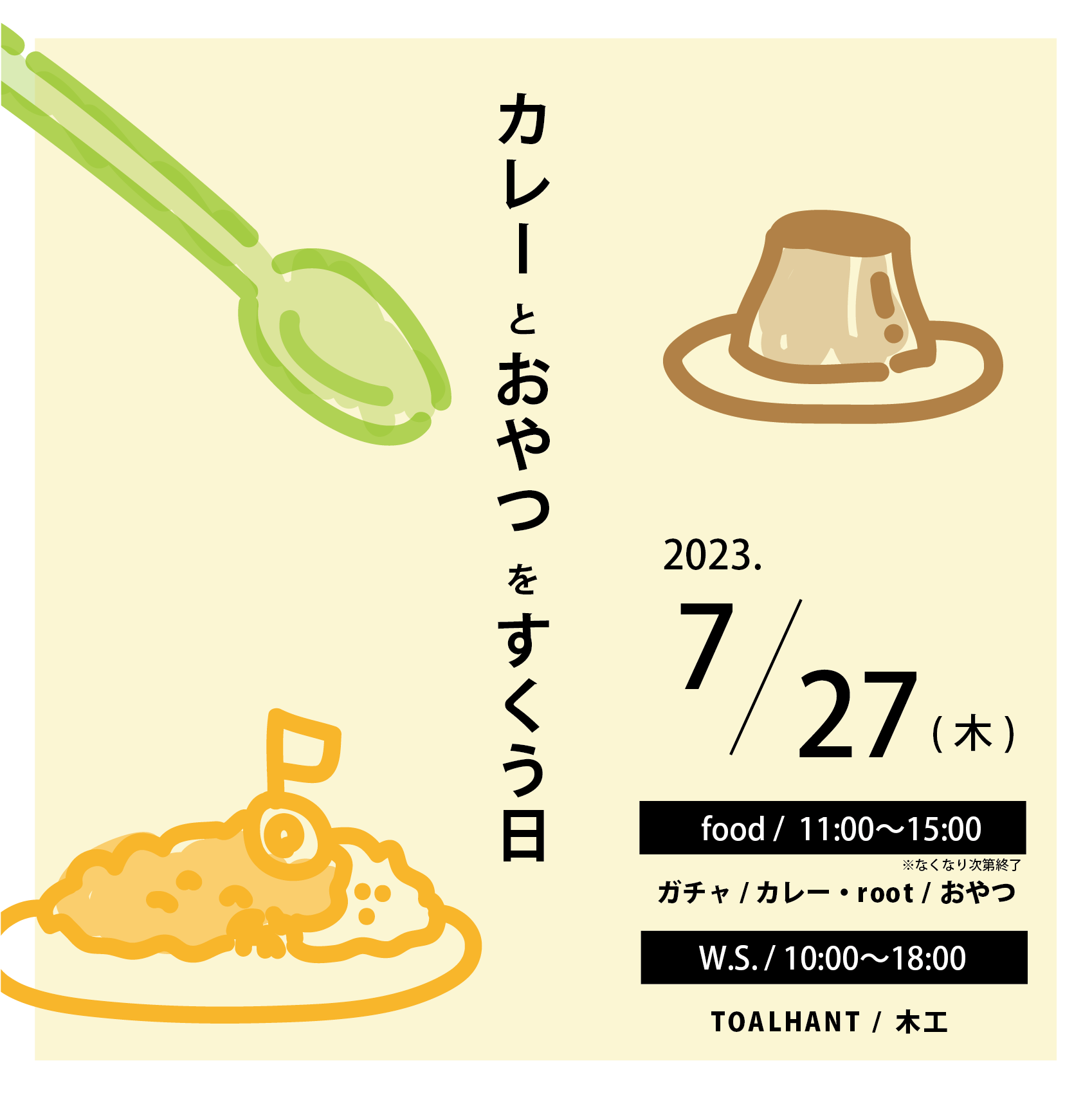 カレーとおやつをすくう日 2023 8/13 未分類 2023 NEWS TOPIC W.S.ミニ絵本をつくろう 岩崎里香 TOKONAME HUB TALK vol.17 関連記事 2026年1月のご案内 2026年1月6日 2025年もありがとうございました。 2025年12月31日 海を感じる時 外山辰郎 2025年12月24日 TOKONAME HUB TALK vol.18開催のご案内 2025年10月21日 いとう写真館2025ご予約開始のご案内 2025年10月21日 10月後半〜11月前半のスケジュール 2025年10月21日 「雲と泥と」形而上の庭 “Cloud and Mud and”metaphysical garden 2025年10月8日 10月のカレンダー 2025年10月8日