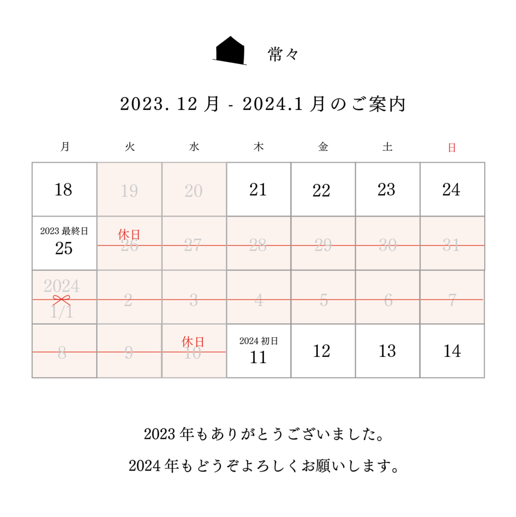 2023-2024 年末年始営業のお知らせ