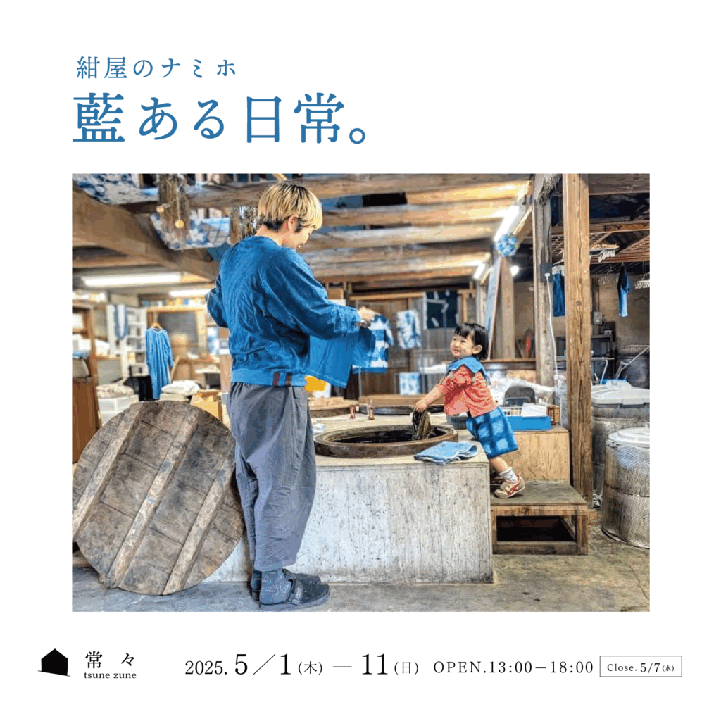 開催日:2025年5月1日〜5月11日(close.6日) [藍染の日常雑貨] 藍染の日常に使える雑貨の展示販売。 [すくすくすくも] 親子のためのテキスタイルプロジェクト。受注販売会。 [知多藍の今までとこれから] 今までの仕事の紹介とこれからの展望のこば...